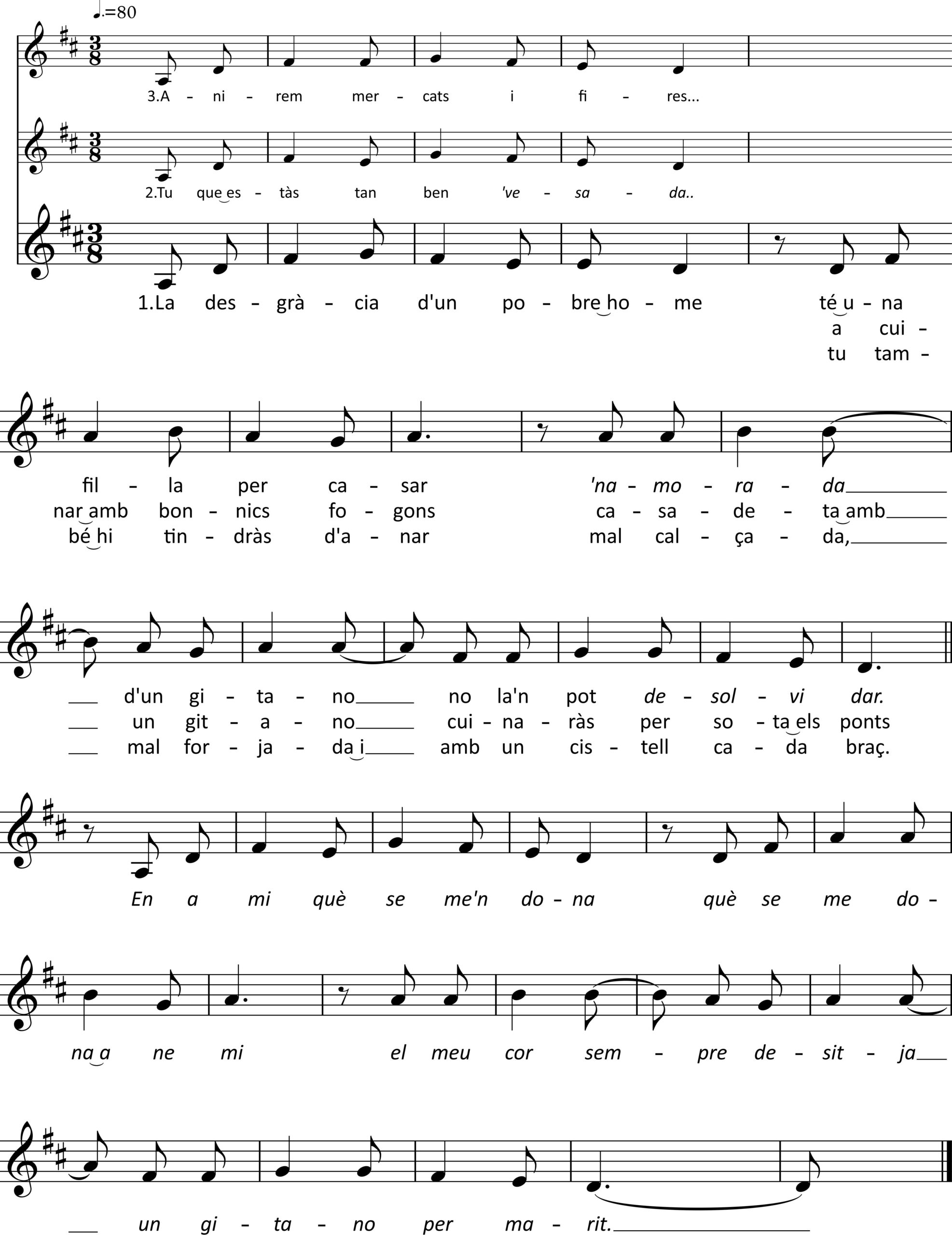 Cançó estròfica narrativa que parla d’un home que viu com una autèntica desgràcia el fet que la seva filla s’hagi enamorat d’un fadrí d’ètnia gitana. En aquest context, s’estableix un diàleg on el pare, sense èxit, intenta fer desistir la filla del seu casament.
