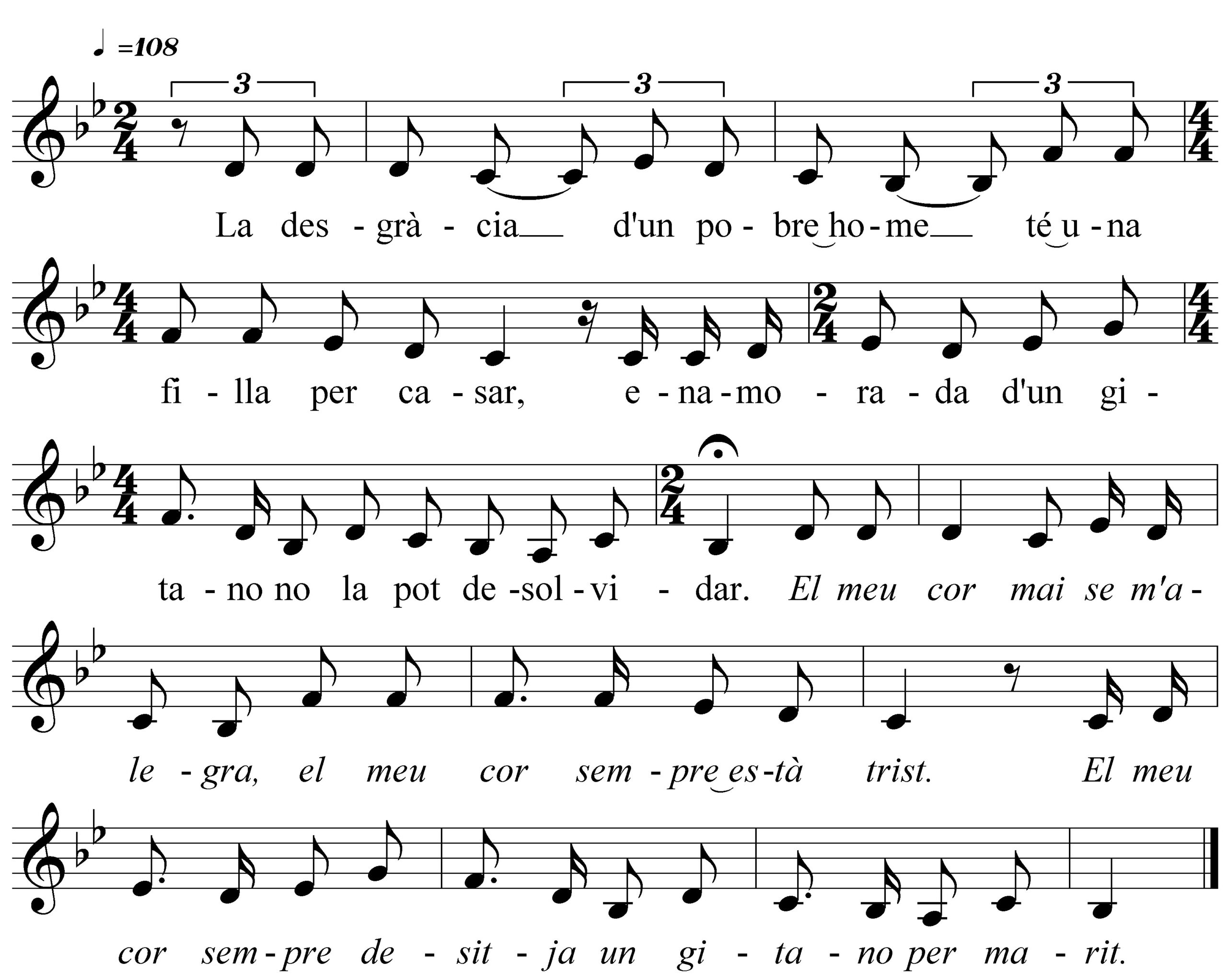 Cançó estròfica narrativa que parla d’un home que viu com una autèntica desgràcia el fet que la seva filla s’hagi enamorat d’un fadrí d’ètnia gitana. En aquest context, s’estableix un diàleg on el pare, sense èxit, intenta fer desistir la filla del seu casament.