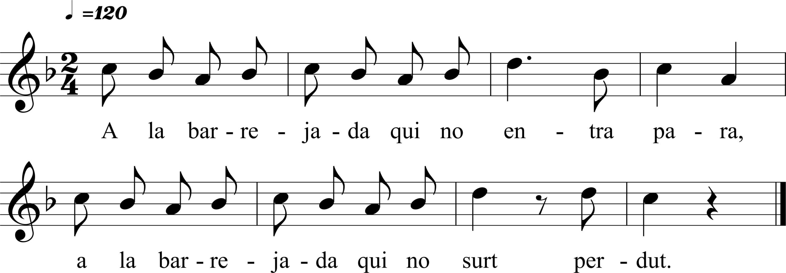 Formuleta utilitzada en el joc de saltar a corda en grup. Dos nens o adults fan rodar la corda i en el moment que canten “qui no entra para”, el participant o participants han d’entrar a saltar. Per altra banda, quan es canta “qui no surt perdut”, els saltadors han de deixar de saltar i sortir a fora.