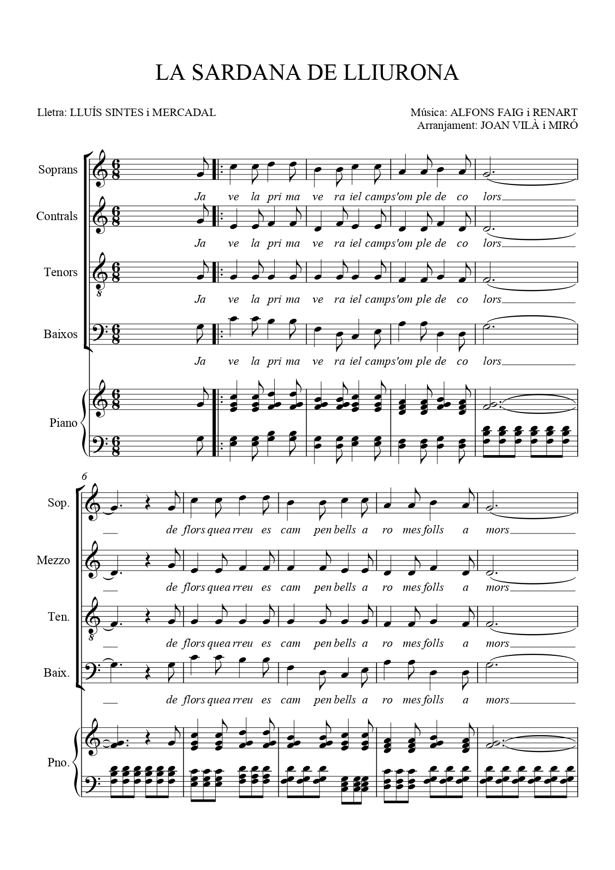 De fet, a partir d’aquesta sardana originalment per acordió, l’any 2012, el baríton menorquí Lluís Cintes i Mercadal (Maó, 1956) hi va escriure un text adaptat i la va titular La sardana de Lliurona. L’arranjament musical per a piano i quatre veus és de Joan Vilà i Miró (1951-2025), compositor i gran estudiós de la vida i la trajectòria del tenor Emili Vendrell (1893-1962).