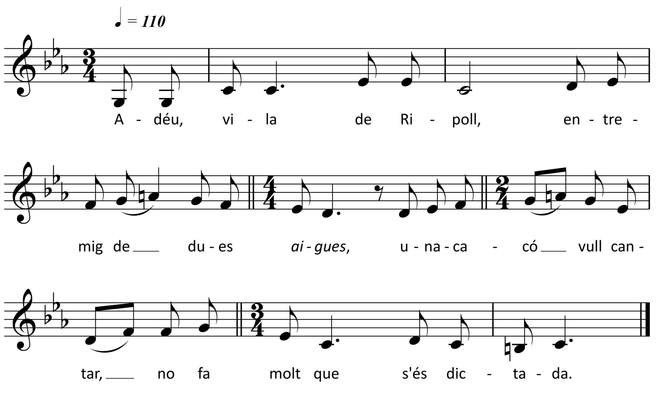 Adeu, vila de Ripoll, entremig de dues aigues,