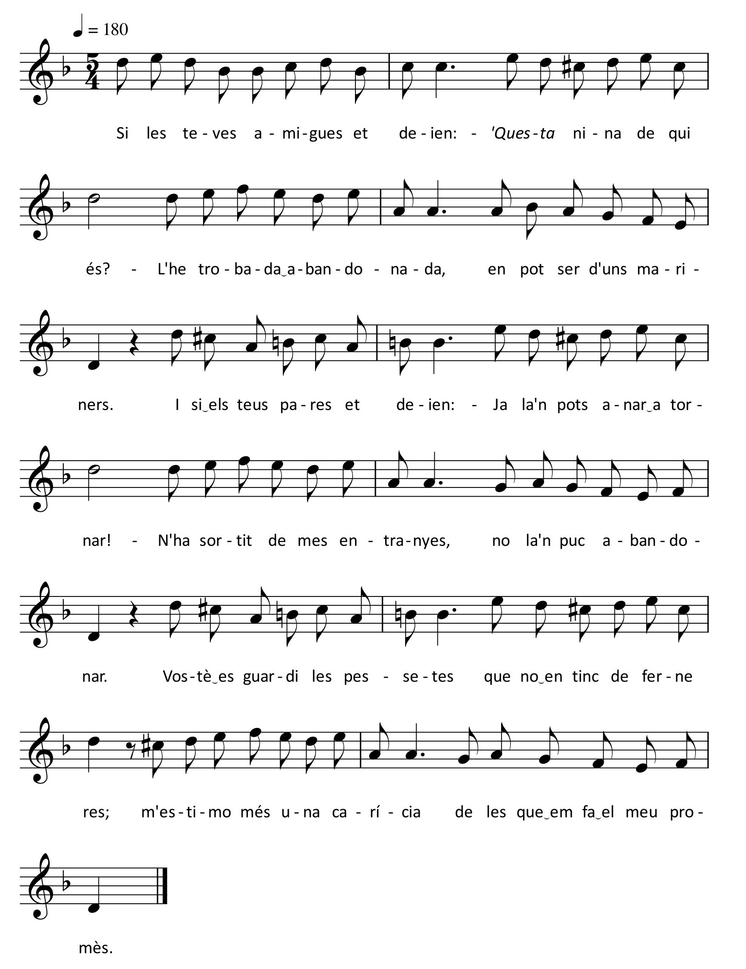 A la mateixa web, cantut.cat (núm.442), localitzem també una altra variant garrotxina de Les Planes d’Hostoles, cantada per en Narcís Matas i Sabater, en Ciset Barraquer (1916- 2015), en un enregistrament d’Albert Massip de l’any 2014. En aquest cas, amb el mateix argument, si bé al final incorpora dues corrandes, a la manera de resposta. I això mateix succeeix en una altra variant escalenca, també publicada al Càntut (núm.295), cantada per Maria Teresa Pellicer i Lleonart i que acaba amb aquesta corranda: