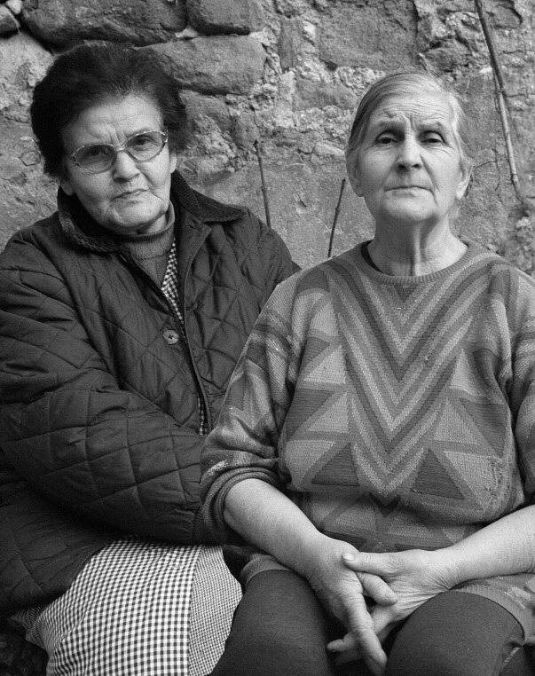 L'Esther Galobardes (Riudaura,1970) i l'Olga Canal (Riudaura,1973) formen part de la tercera generació de Cantadors de Riudaura. Josep Maria Melció, Mel. Arxiu Grup de Recerca Folklòrica de la Garrotxa.